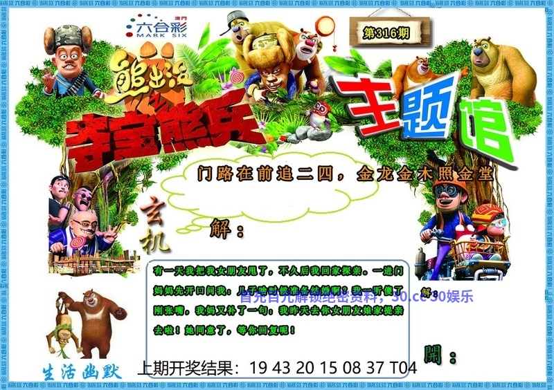 【30.cc娱乐城3090.com】官宣:在3090.com注册成为会员即可天天红包雨。【30.cc娱乐城3090.com】由澳门熊出没玄机网全程担保,玩家百分百放心。六合彩特码58倍。买彩票,就选30.cc娱乐城3090.com,您身边做的信誉平台,相信品牌的力量!